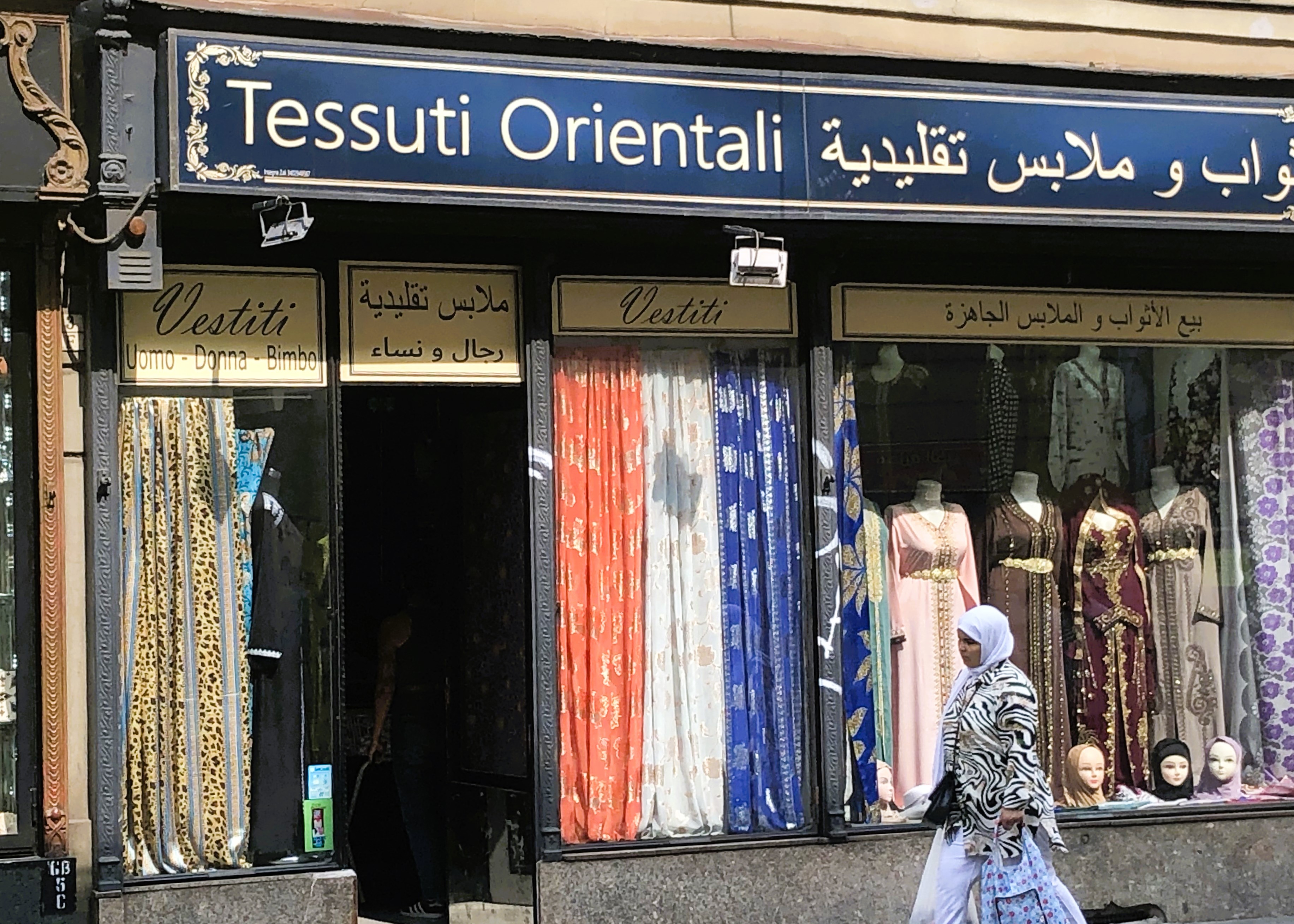 Signs: Chinese, Arabic, Bengali. Shop window saris. Chinese halal dishes. Push-chairs, headscarves, cobblestones, churches, churches, churches. Graffiti. VIVA LENIN. We bid farewell to Emanuele and wish him success with his plans for the distributed museum.
