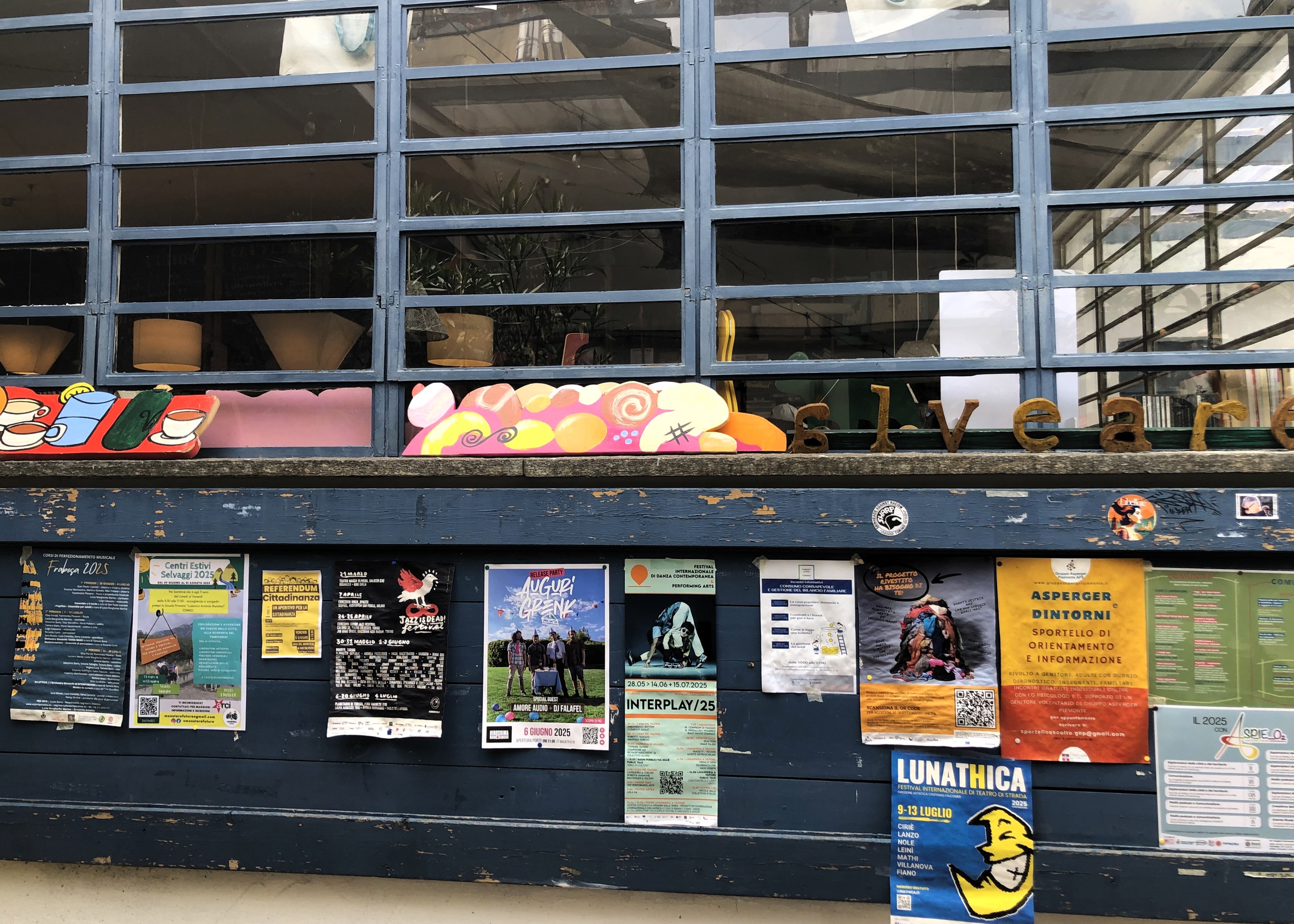 Arriving at the Via Baltea Community Hub we find two young people playing table football in the street outside. Two more are playing table-tennis. The street is closed to traffic and the metalled surface painted in bright colours. We pause to drink water, and meet with Matteo, one of the founders of the organisation. He tells us that the proposal to close the street to traffic was not accepted at first. But the community hub persisted, won approval for a trial run, and the local authorities granted permission. The pedestrianised area brings all kinds of people to the community hub and offers a large recreational space. The building was formerly a print works. The community hub now rents the premises from the printer. The community hub will provide one of the venues in a series of six monthly arts-based workshops which Marta and Gerardo will organise and run from October ’25 to March ’26 in collaboration with creative practitioners.